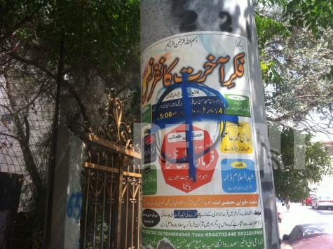 Τα προσβλητικά συνθήματα εναντίον του Ισλαμισμού, που σε καμιά περίπτωση δεν εκφράζουν το σεβασμό στην ανεξιθρησκεία που διέπει το σύνολο των Ελλήνων, καταγράφηκαν από τον ανταποκριτή τηλεοπτικού σταθμού του Πακιστάν και ήδη κάνουν το γύρο του κόσμου, μέσω του διαδικτύου.
