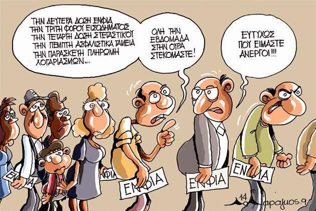 (Ανήθικο δίδαγμα: Υπάρχουν και χειρότεροι από αυτούς που πήγαν να πληρώσουν. Αυτοί που δεν πήγαν να πληρώσουν με την ελπίδα ότι ο ΣΥΡΙΖΑ όταν γίνει κυβέρνηση θα καταργήσει τον ΕΝΦΙΑ. Δεν πειράζει, θα τα πληρώσουν όλα μαζεμένα με τις προσαυξήσεις.)